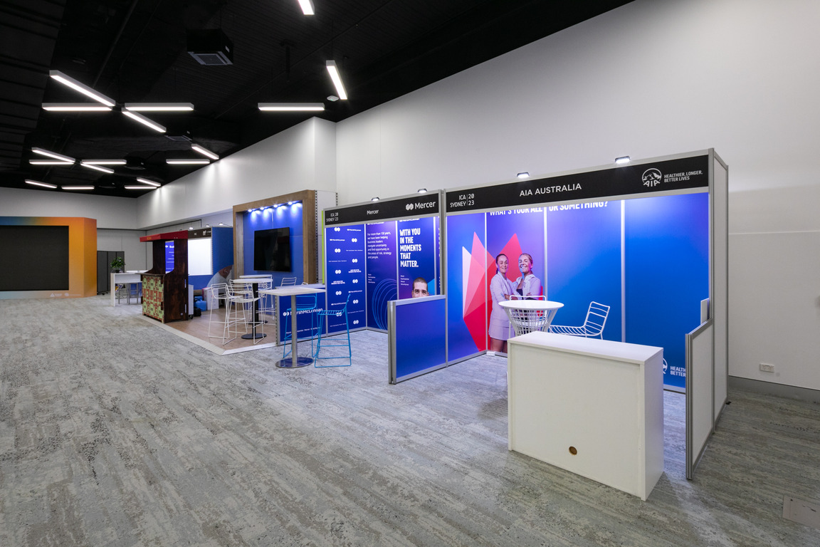 Installation was executed within a tight bump-in schedule at ICC Sydney. The Party Hire Company’s structured approach to staging and installation ensured all booth structures were installed efficiently and accurately.